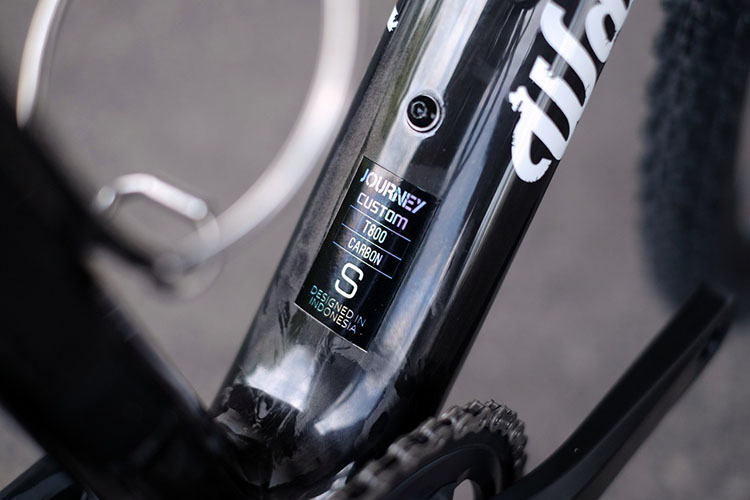Tunggangan baru founder dan CEO Strive Indonesia, Edo Bawono. Wdnsdy Journey karbon dengan corak custom raw carbon dua warna. Bagian belakang tetap warna karbon, bagian depan merah transparan yang berani. Sepeda multifungsi dan multimedan ini pasti akan dipasangi berbagai macam wheelset dan ban. Untuk settingan awal, menggunakan Shimano GRX 1x, depan 42T dengan kombinasi sproket 11-42. Wheelset Fulcrum Zero Competizione Disc, dipadu ban segala medan Teravail 38 mm.